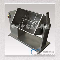 3、翻轉(zhuǎn)槽體的出料方式:混合完畢,停止攪拌,可操縱翻轉(zhuǎn)手柄,將槽體旋轉(zhuǎn)至翻轉(zhuǎn)的最大角度,粉體物料自流出來進入裝料容器(用戶自備),具有卸料快、無殘余等優(yōu)點。